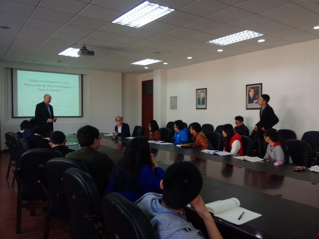 应交通运输学院院长赵胜川教授邀请,乔治·华盛顿大学Steven J. Balla副教授于11月3日访问我院。Steven J. Balla副教授是公共政策、公共管理和国际事务方面的著名专家,现任南开大学富布莱特学者,在实践和理论相结合的研究和教学上具有丰富的经验。在访问期间,Steven J. Balla副教授在我院举办了两场分别题为“Citizen Participation in U.S. Policymaking: Who Participates? Does It Matter?”和“Technology and Political Participation in China: Does the Internet Change Everything or Nothing at All?”的精彩学术讲座。