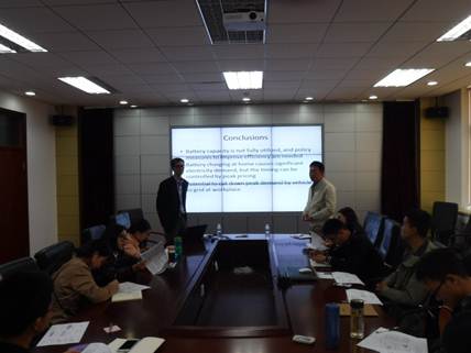 山本教授结合日本电动汽车长期观测数据,对充电汽车的快充和慢充两种充电行为进行了深入浅出的介绍,同时还分析了电动汽车最佳充电时机,以及日本丰田市智能社区的能量管理案例,给我院师生留下了深刻的印象。