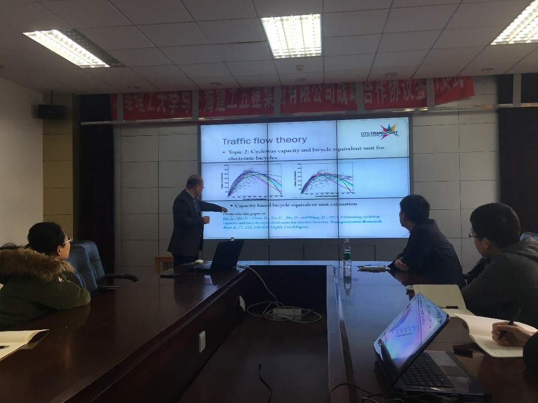 悉尼科技大学土木与环境工程系交通工程Senior Lecture曲小波副教授应建设工程学部交通运输学院副院长刘锴副教授的邀请,于2017年1月4日来我院进行学术交流。