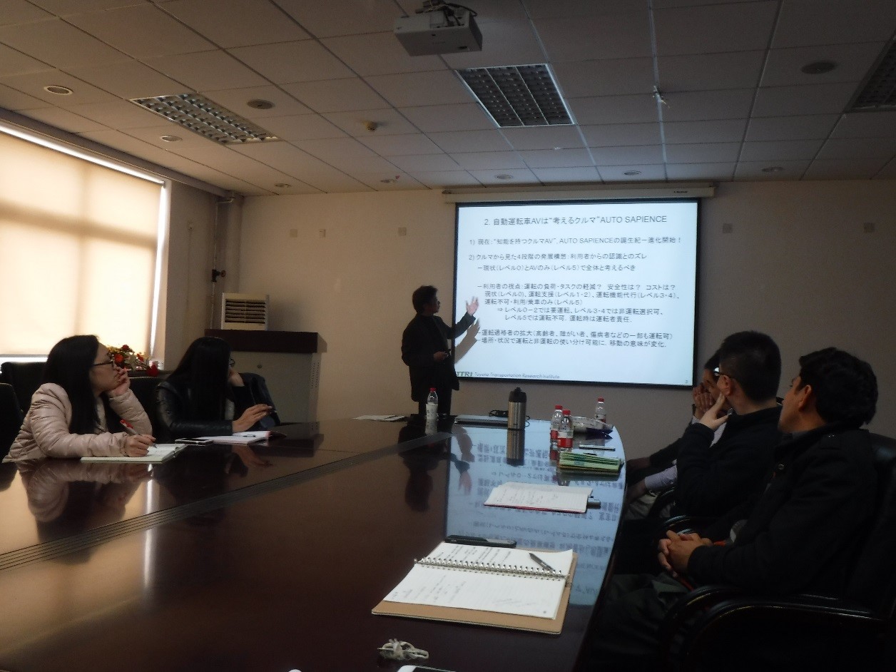 第二场“有关自动驾驶技术的效果与普及的调查分析”的报告中,安藤良辅教授首先就日本自动驾驶技术的革新历程和发展现状,为我们讲解了自动驾驶技术发展道路中存在的问题和面临的挑战,并阐述了未来自动驾驶技术发展道路中可能面临的瓶颈,最后安藤良辅教授详细介绍了日本主要汽车研发企业对自动化技术的尝试,以相关实际案例向我们展示了自动驾驶技术发展的必然需求,展望了自动驾驶技术的发展前景。期间与我院师生的交流更引发了我们对该领域的深刻思考。
