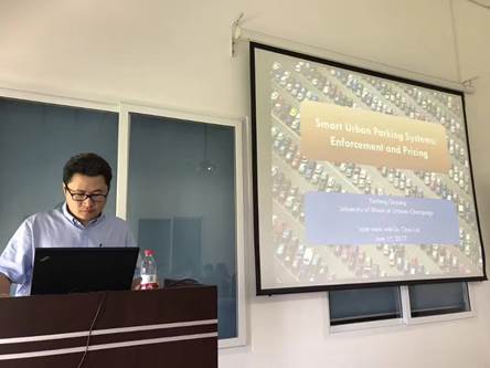 在6月1日下午的讲座中,欧阳彦峰教授阐述了如何通过动态停车定价和预订系统提高智能停车系统的性能,创新性的提出了一种多阶段非合作双层模型以捕捉停车机构和驾驶员间的复杂动态交互作用。这场报告使我院师生开拓了思路,受益良多。此次讲座进一步提高了我院国际化教育水平。