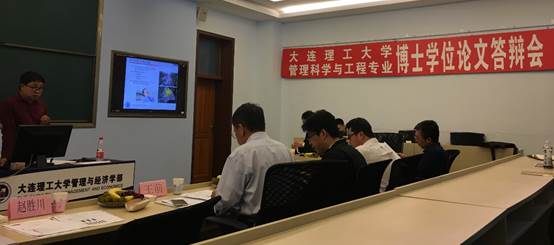 2017年6月4日上午,我院博士研究生唐春艳、何明卫于大连理工大学管理与经济学部楼108进行了博士学位论文答辩。答辩委员会主席由大连理工大学管理与经济学部郭崇慧教授担任,答辩委员包括美国伊利诺伊-香槟分校(UIUC)欧阳彦峰教授、大连理工大学人文与社会科学学部王前教授、大连理工大学管理与经济学部那日萨教授、大连理工大学交通运输学院赵胜川教授和上海海事大学交通运输学院葛颖恩教授。孙丽君副教授,宿长海副教授担任答辩秘书,我院部分研究生参加了答辩会。