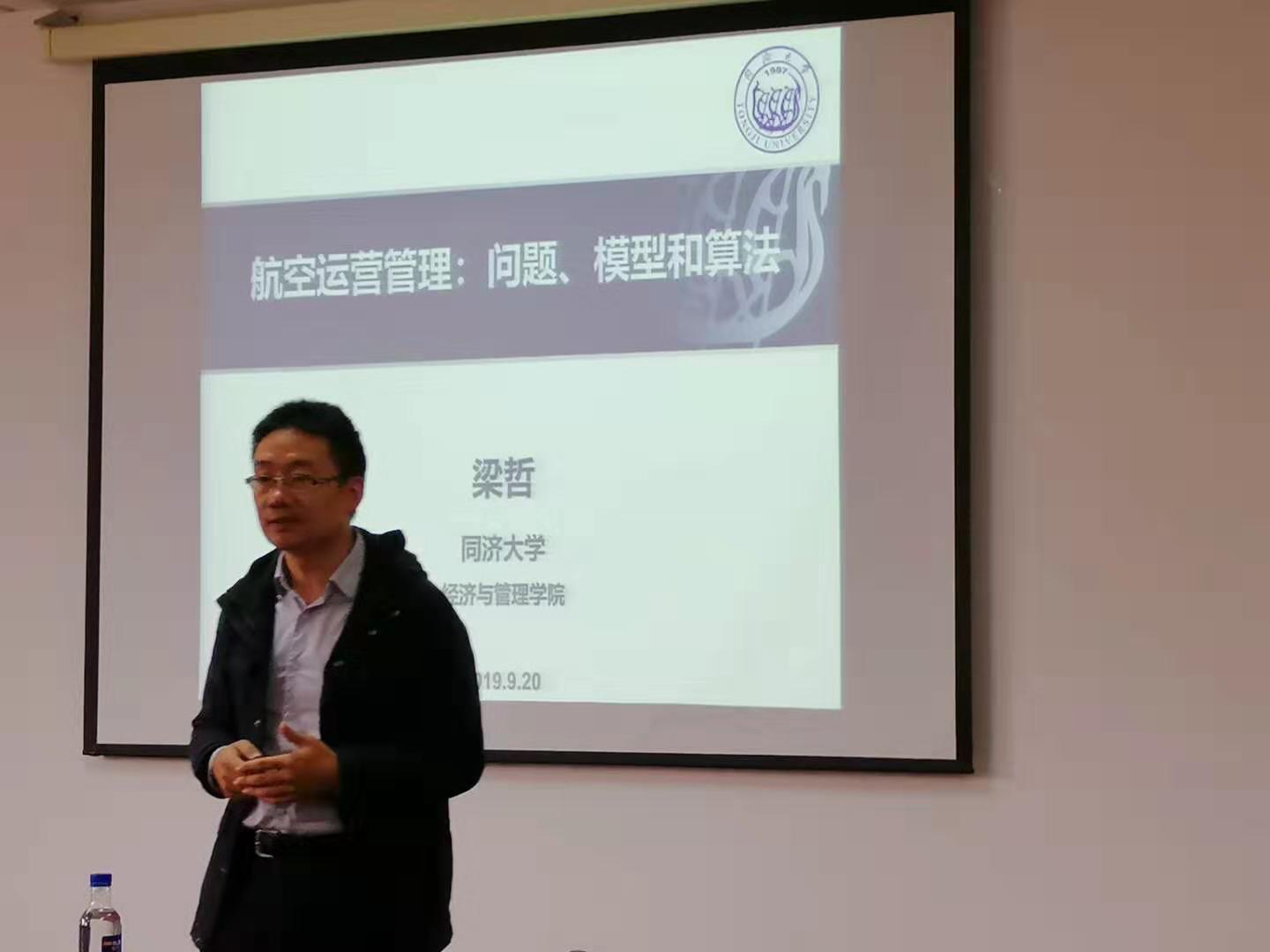 9月20日,应建设工程学部交通运输工程学院刘锴教授邀请,国家自然科学杰出青年基金获得者、同济大学经管学院梁哲教授访问我校,并在综合实验3号楼四楼会议室为我校师生深入浅出地介绍了航空公司运营管理相关的重大科学问题和解决方案。