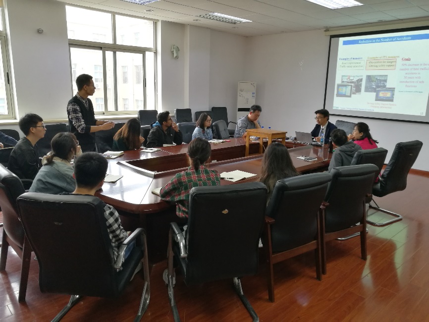 安藤良辅教授为学院本科生和研究生带来三个报告,分别介绍和探讨了从智慧城市的建设看智能交通的发展趋势,自动驾驶与新的交通革命,老年人的汽车驾驶问题,这些报告针对智慧城市建设、自动驾驶引导的交通社会变革、老年驾驶人的安全问题等前沿技术和社会问题展开了详细的分析与探讨。