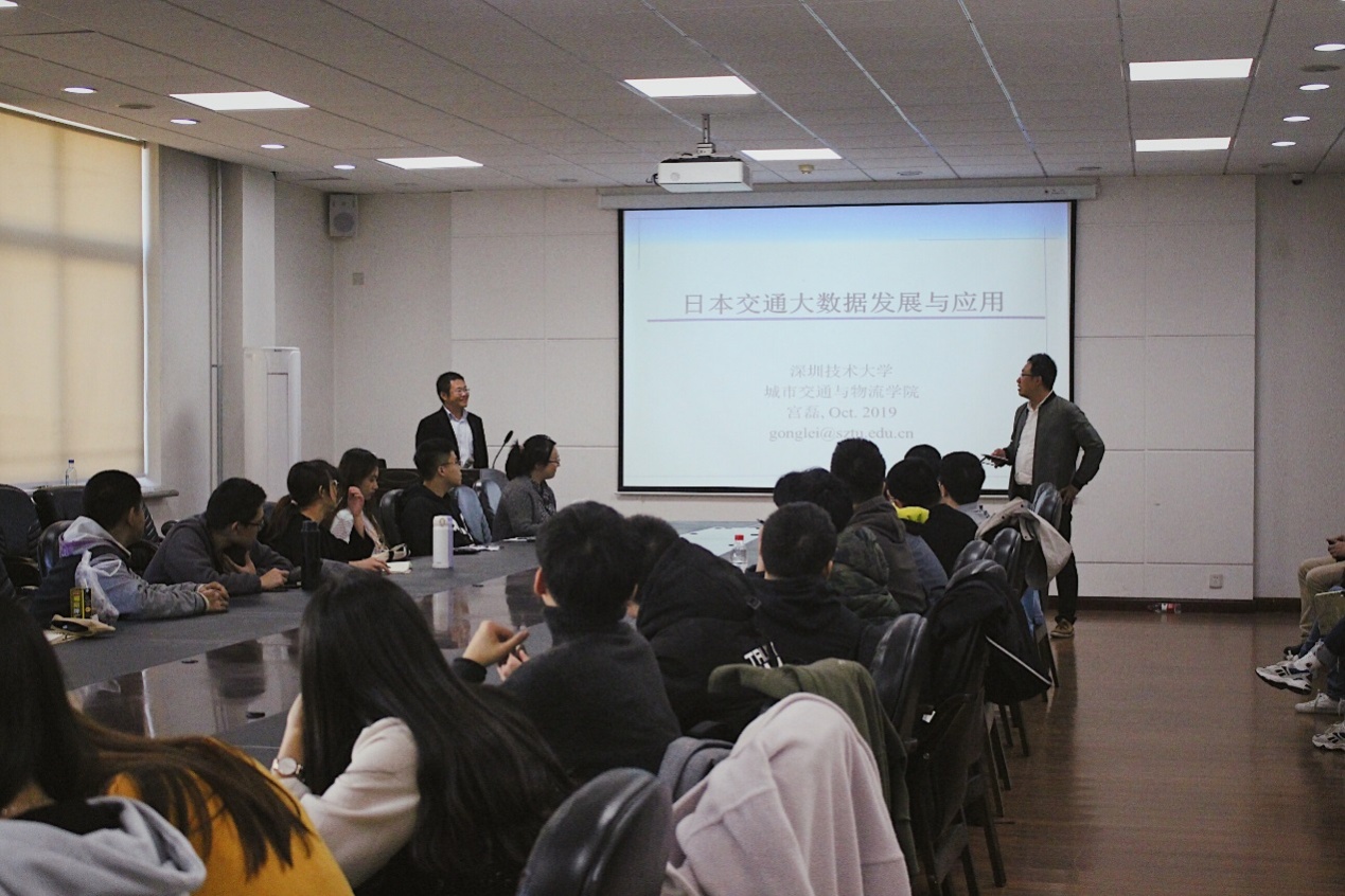 深圳技术大学城市交通与物流学院交通运输工程系主任罗钦副教授和宫磊副教授一行于10月14日来访我校交通运输学院,调研我校交通运输学科建设举措和交通工程本科培养方案。此外,宫磊博士应刘锴教授邀请为我校师生介绍了“日本交通大数据发展与应用”。