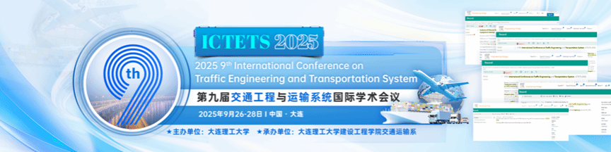 为扩大和促进交通工程与运输系统等研究领域的学术交流与相互合作,第九届交通工程与运输系统国际学术会议(ICTETS 2025)将由大连理工大学主办,大连理工大学建设工程学院交通运输系承办,于2025年9月26-28日在大连召开。本次会议将邀请多位重量级嘉宾出席报告!